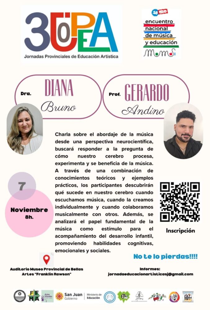 Charla taller: Música y Cerebro: aportes de las neurociencias a cargo de Diana Bruno y Gerardo Andino