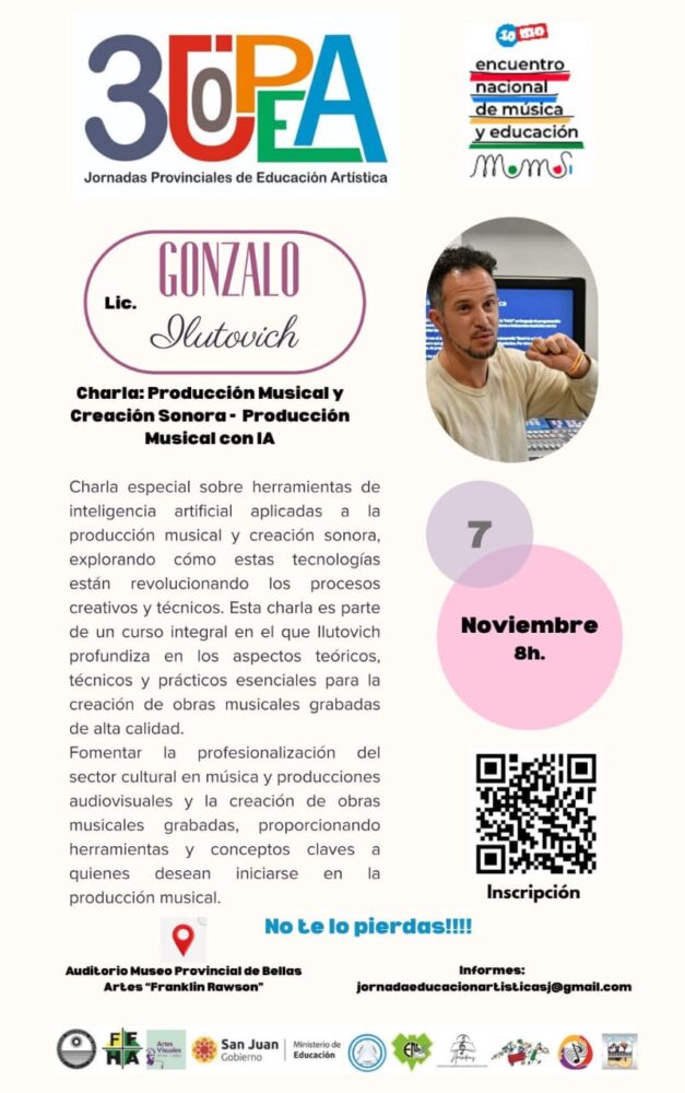 Presentará una clase especial sobre herramientas de inteligencia artificial aplicadas a la producción musical y creación sonora, explorando cómo estas tecnologías están revolucionando los procesos creativos y técnicos. Esta charla es parte de un curso integral en el que Ilutovich profundiza en los aspectos teóricos, técnicos y prácticos esenciales para la creación de obras musicales grabadas de alta calidad.