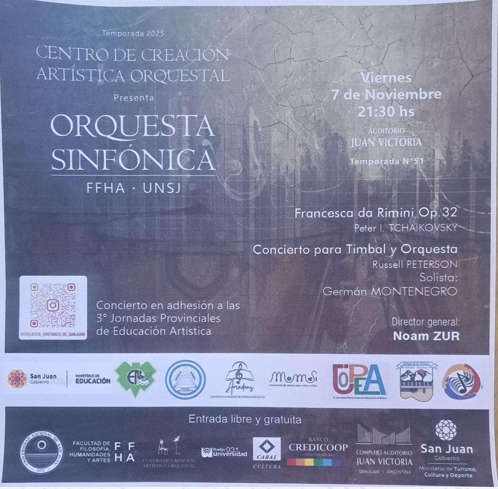 Cierre a las 21:30 hs con la Orquesta Sinfónica de la FFHA – UNSJ